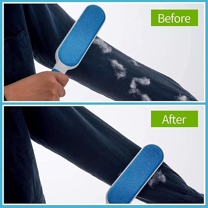 • Double the Power, Double the Clean -Two sides faster cleanup, Just swipe the Pet Hair Remover and dip it into the base to self-clean. No more refills, no more waste.