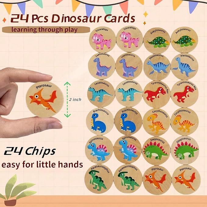 Memory Game for Kids, 24Pcs Wooden Flash Cards for Toddlers Memory Matching, Educational Dinosaur Find Toys Preschooler Early Memory Practice Learning Activities, Gifts for Boys Girls