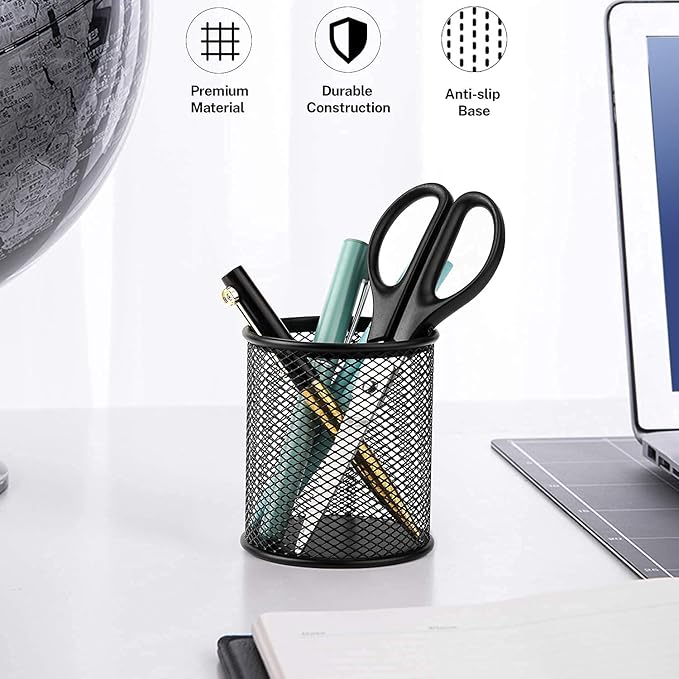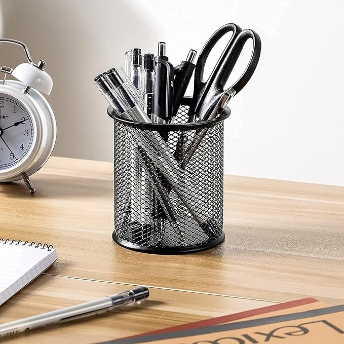 • 3: MULTI-SCENE USAGE encil holder for desk is ideal for home and office use. Pen Organizer stores office products, create an orderly & neat office environment. Mesh style metal pencil holder, ideal desktop organizer for office,school and home.