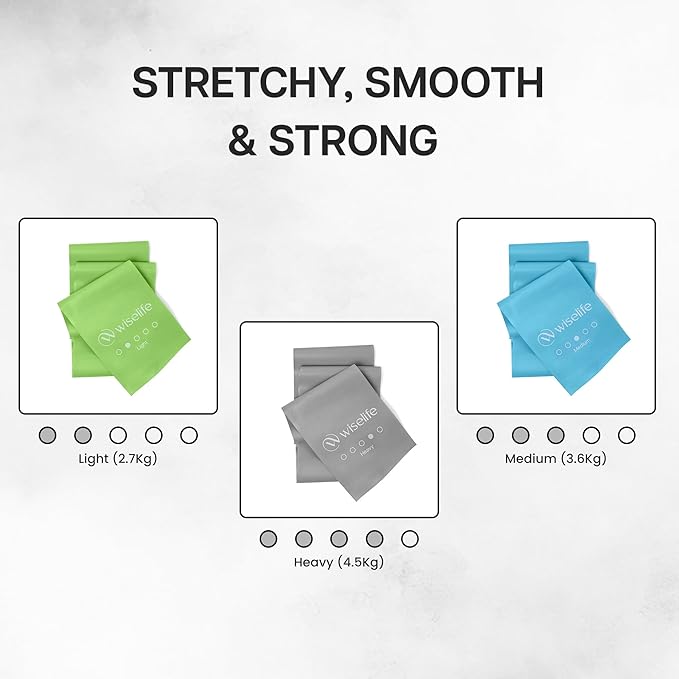 • Multiple Resistance Levels: Tailor your workouts to your exact needs with the WiseLife Thera Band's versatile options. Available in three distinct resistance levels – light, medium, and heavy – it caters to users of all fitness levels, from beginners to advanced athletes.